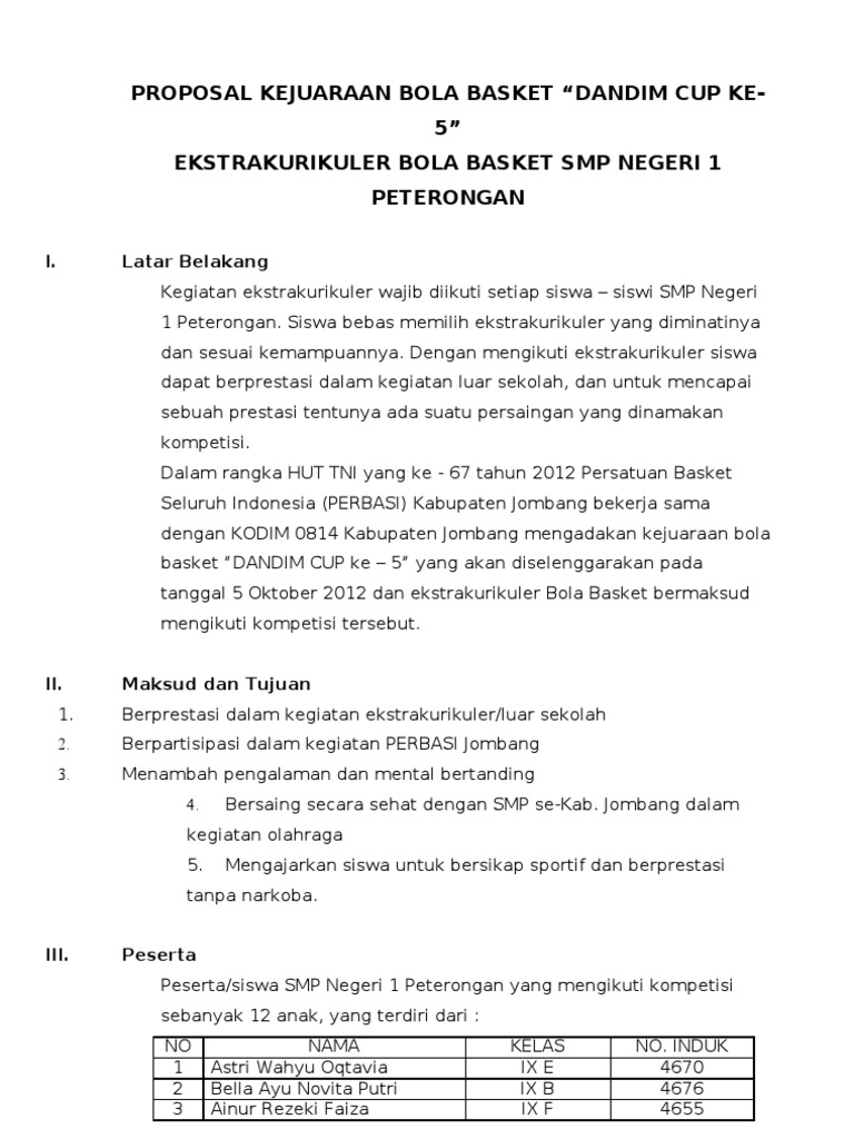 Meningkatkan sarana dan prasarana olahraga pengurus persatuan pemuda desa kemuning muda yang. Contoh proposal kegiatan sekolah, osis, pramuka, rohis, pentas seni, festival musik, lomba futsal, olahraga, kerja bakti, gotong royong, karang taruna, bakti sosial, seminar, reuni akbar, tabligh akbar. Text of proposal kegiatan olahraga. Printable contoh proposal sponsorship event olahraga edit. It allows an organization to cast a wide net and equally.
